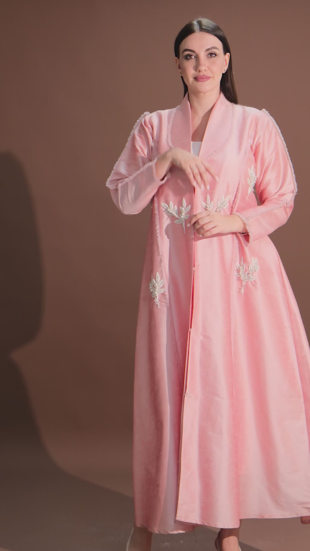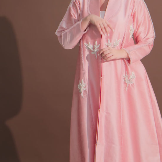 Made from Hari Hindi Rish fabric, this abaya material features intricate handwork combined with a stylish cutting model for a unique and elegant finish. Perfect for crafting sophisticated and eye-catching abayas.